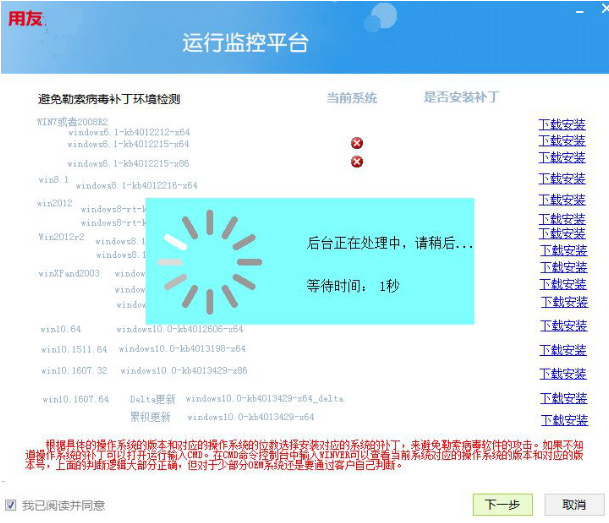 為了協(xié)助客戶(hù)預防和規避勒索病毒帶來(lái)的危害,U8產(chǎn)品研發(fā)部門(mén)快速開(kāi)發(fā)了勒索病毒安全補丁檢查工具,通過(guò)工具,客戶(hù)可以了解自己服務(wù)器缺少哪些勒索病毒相關(guān)補丁,也可以在線(xiàn)下載安裝所需補丁,確保服務(wù)器安全。